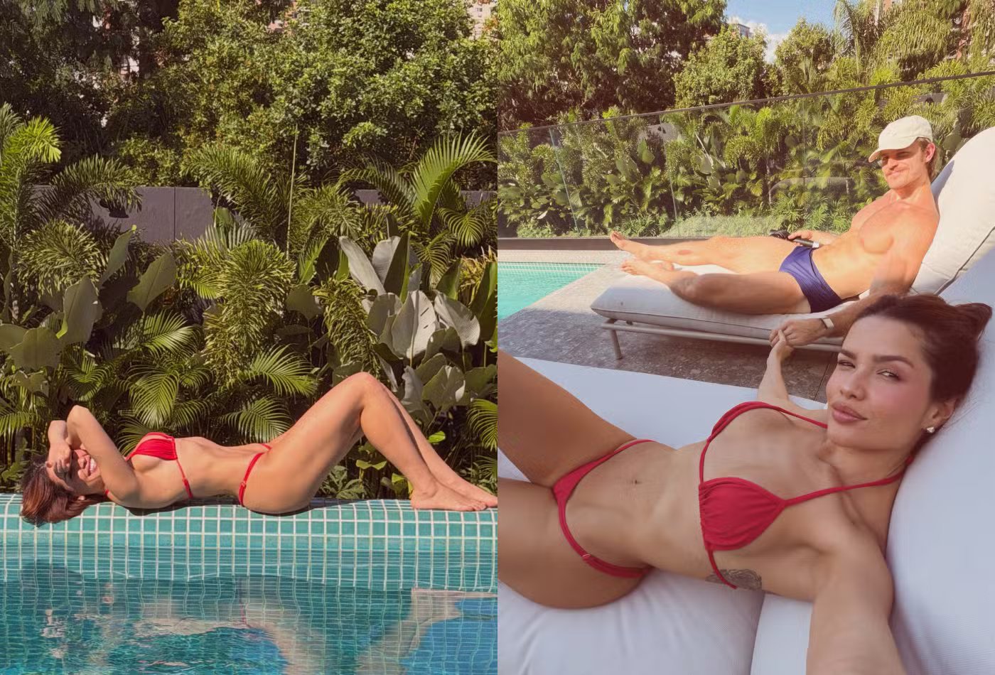 A cantora e influenciadora Juliette, de 36 anos, movimentou as redes sociais neste domingo (19) ao compartilhar registros de um momento de descanso ao lado do noivo, Kaique Cerveny, de 27. Nas imagens, a artista aparece relaxando à beira da piscina, tomando sol e exibindo boa forma em um biquíni vermelho, o que rapidamente chamou a atenção dos seguidores.
