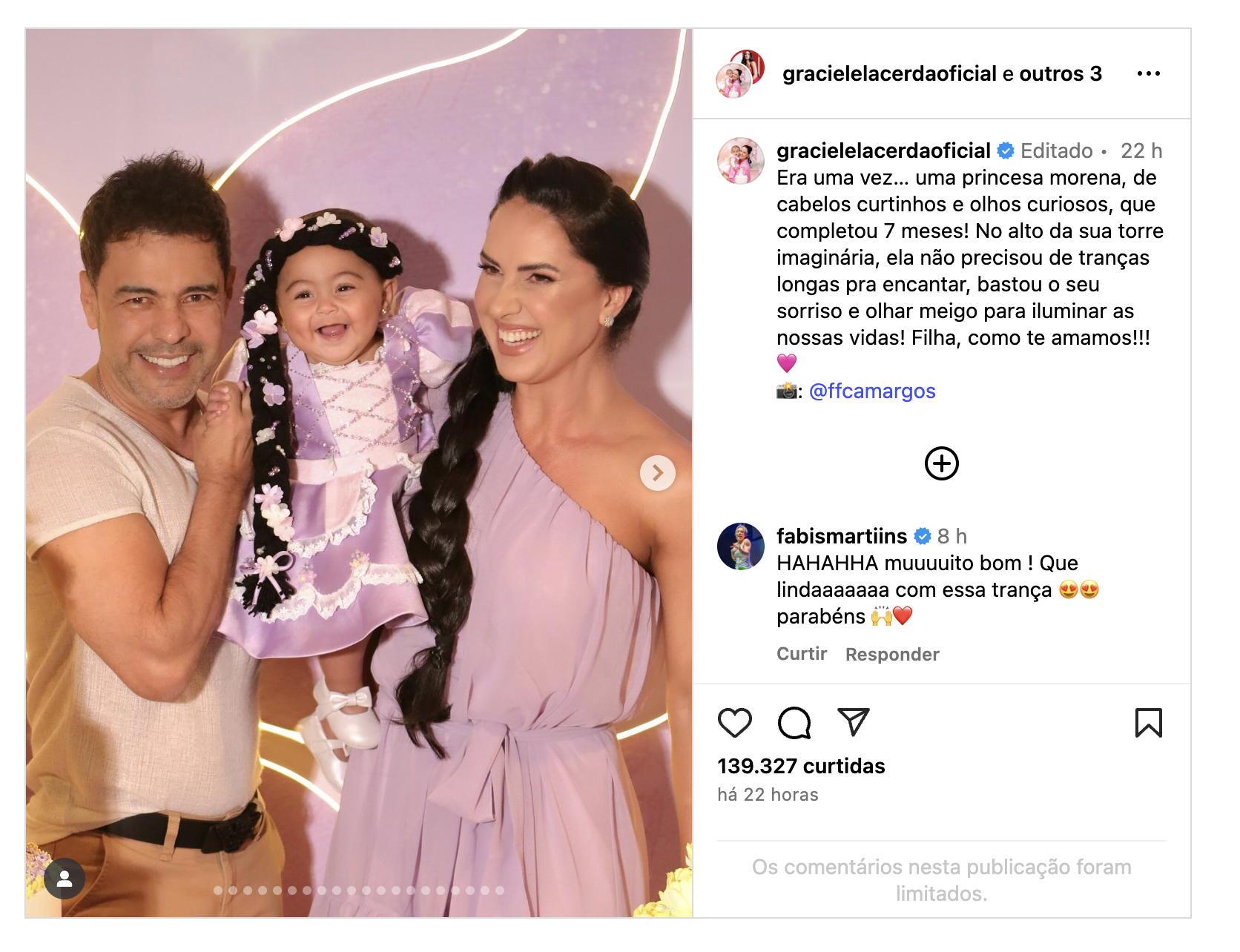 Zezé Di Camargo e Graciele Lacerda comemoram 7 meses da filha Clara com tema Rapunzel – Cosmopolitam